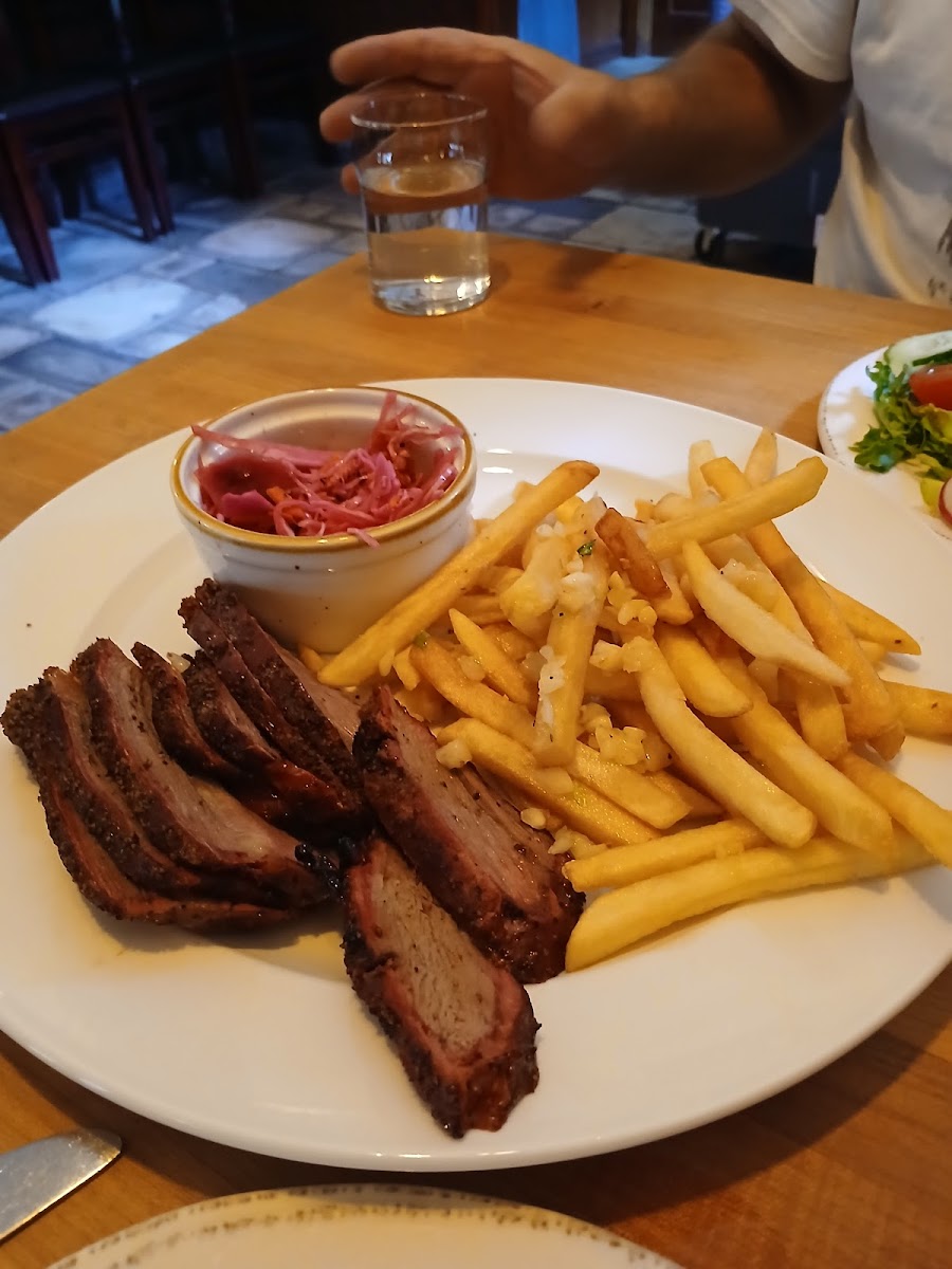 One of the standout features of the Old 5 Mile House is its unbeatable menu, which boasts a variety of signature dishes that never fail to impress. Whether you’re a meat lover or just looking for a delicious meal, there’s something for everyone. The brisket, perfectly smoked and tender, is a fan favorite, along with the baby back ribs, which are fall-off-the-bone delicious. If you’re in the mood for a classic barbecue experience, the smoked tri-tip is a must-try, offering rich flavors and a melt-in-your-mouth texture. For those who prefer something a little lighter, the crispy chicken wings and golden fried chicken are always a hit.